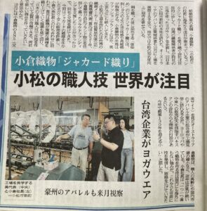 9月23日の北國新聞の朝刊にて、台湾の黃晟睿氏が来社された事が掲載されました。
